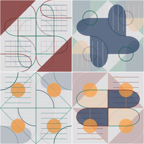 De illustratie hierboven lijkt complex, maar er is wel degelijk samenhang. Er is een herkenbare, consequente toepassing van vormen en kleuren; er zijn keuzes gemaakt. We begrijpen de basisgedachte. Als we een blokje zouden moeten vervangen, kunnen we iets passends maken, zonder dat we er een uitgebreide set regels naast hoeven hebben. Vervolgens kan iedereen beoordelen of we een passend blokje hebben ontworpen of niet. Dat is het voordeel van doordachte eenvoud.
